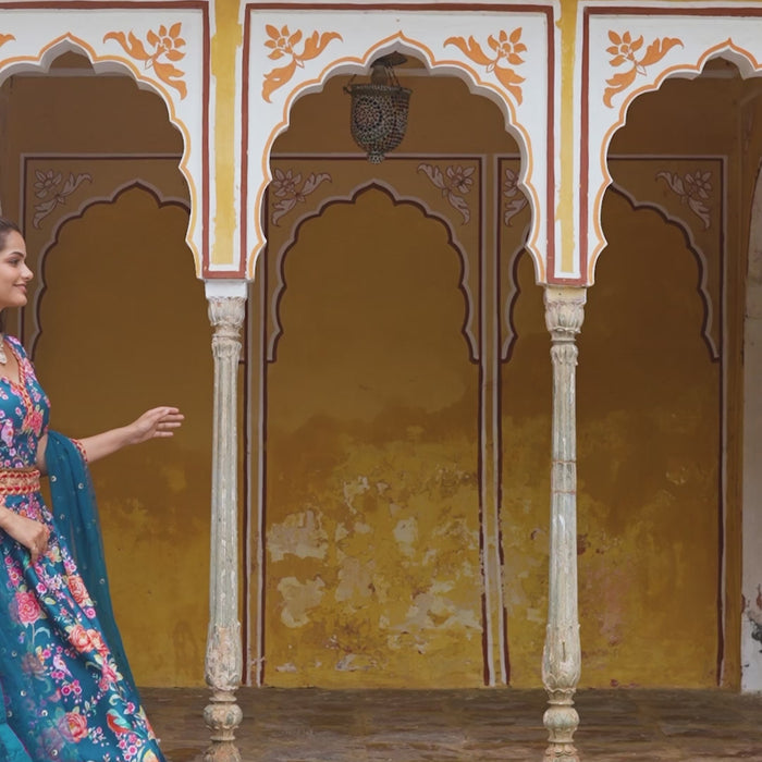 Bold Fusion: This lehenga perfectly blends traditional Art Silk with a Contemporary Digital Print design, making it a Best Seller for modern, vibrant festivities.